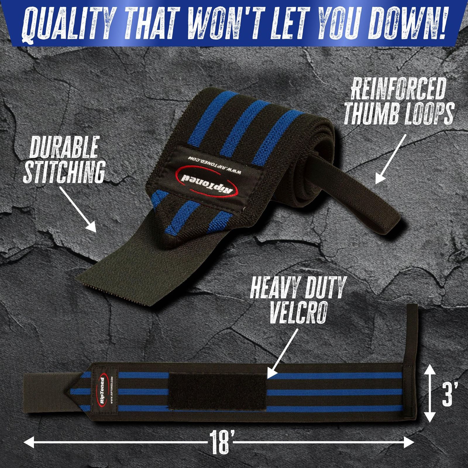 Rip Toned社製リストラップ サムループ付き18インチ プロ級男女兼用リストサポートブレイス ウエイトリフティング X-fit パワーリフティング 筋力トレーニング ボーナスEブック 日本語ではない場合があります 付き Blue - Stiff