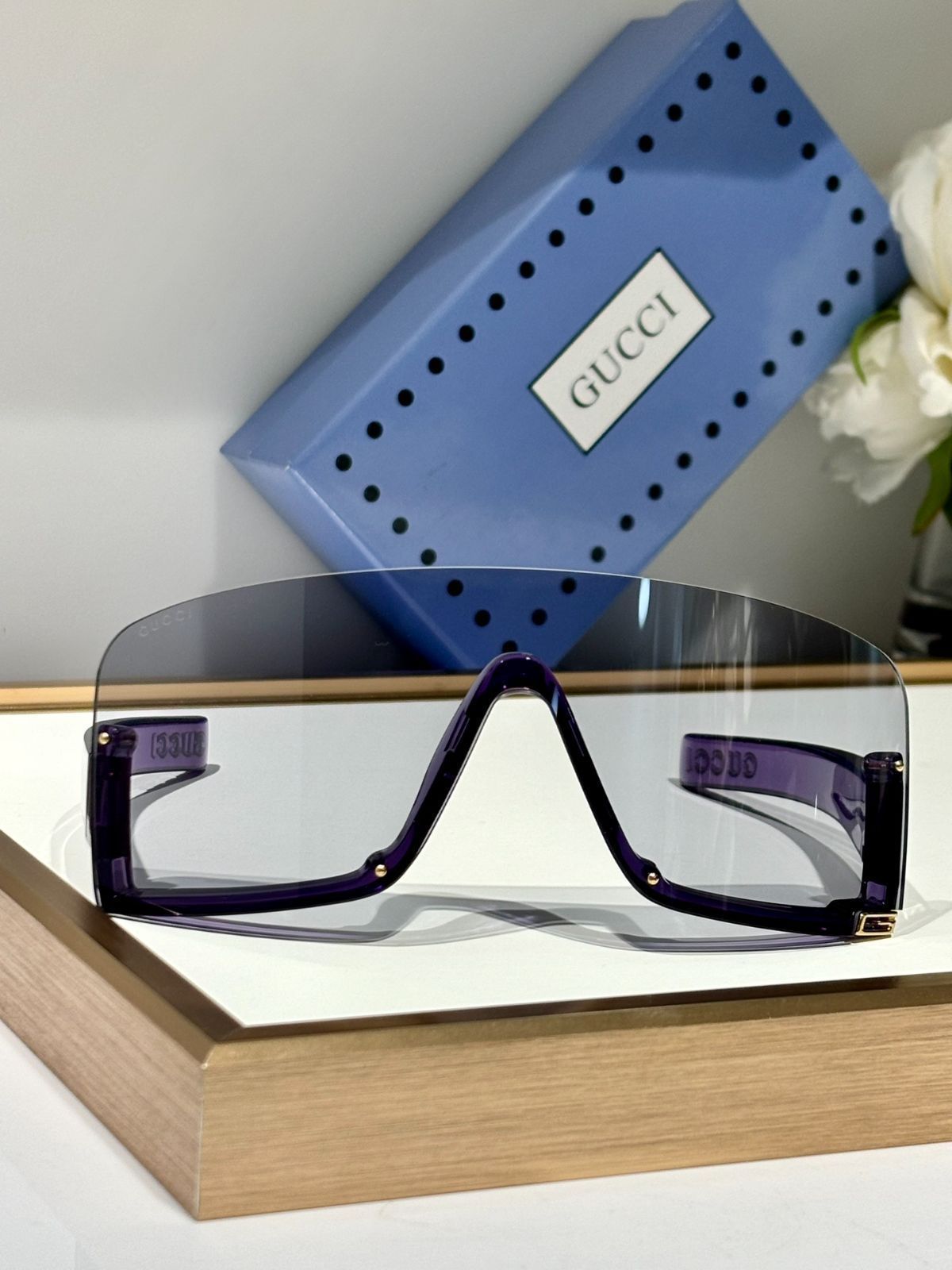 この GUCC* のメガネは、オーバーサイズのデザインで、高品質な素材を使用して製作されています。各々の商品には独立した防偽コードが付いており、真贋の識別が容易です。独特なデザインにより、紫外線を効果的にカットし、目をしっかりと保護します。着用感も快適で、様々なスタイルに合わせやすいです。