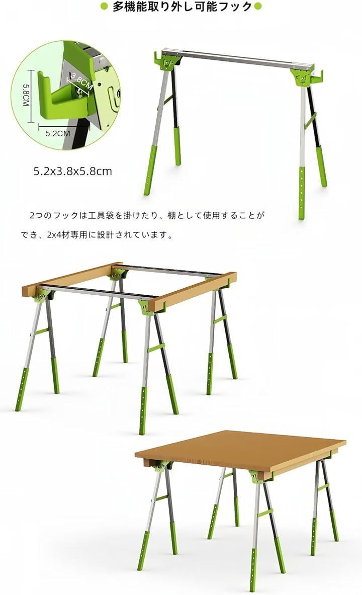 「2x4サポートアーム」ソーホースは2x4パネルの両方をサポートします。
