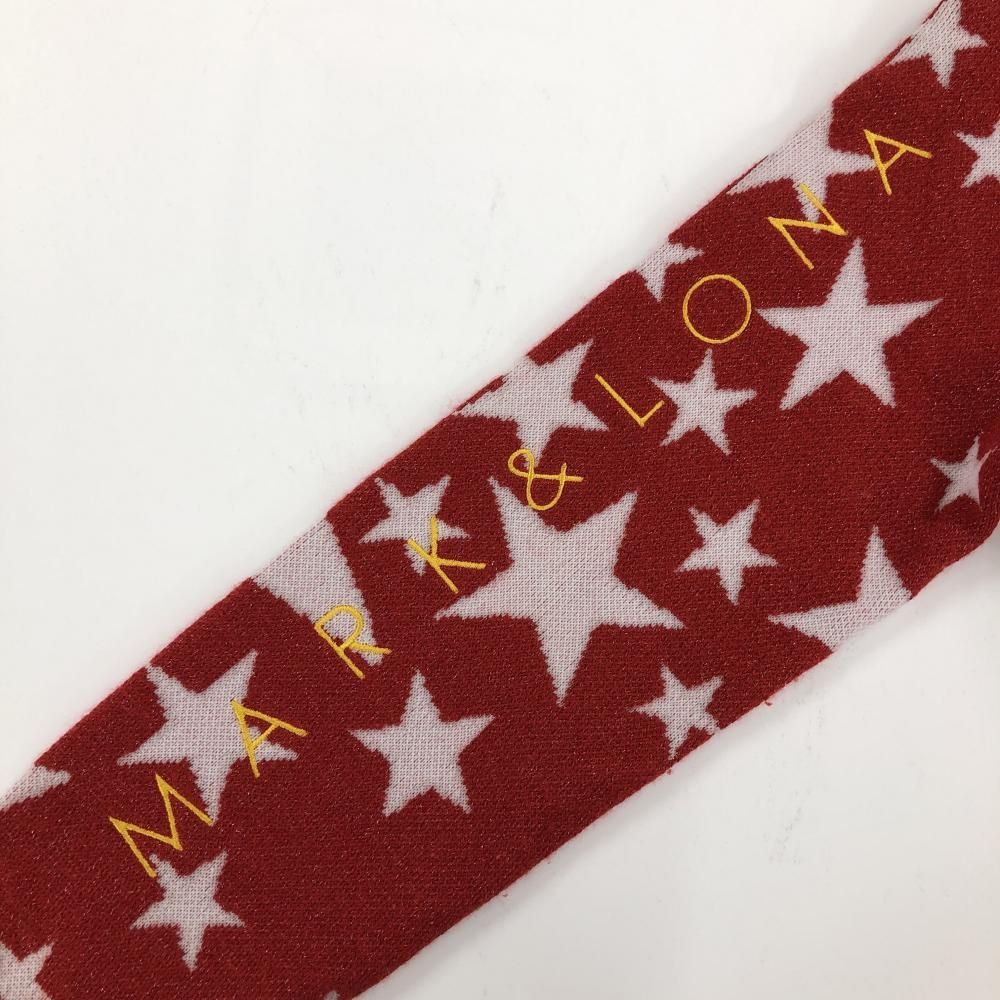超 マークアンドロナ セーター レッド×白 星総柄 背面ビッグスカル ウール混 ニット レディース S ゴルフウェア MARK&LONA