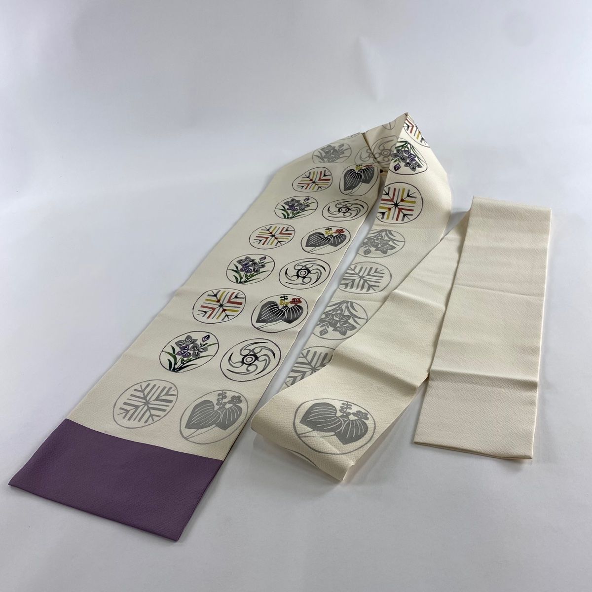 名古屋帯 秀品 丸文 草花 クリーム 正絹