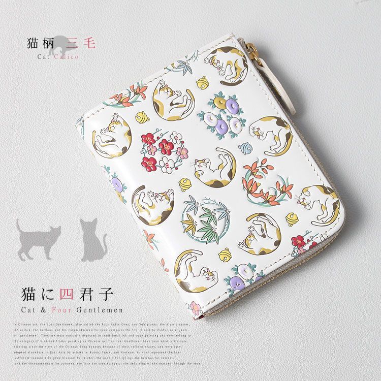 正規取り扱い 文庫 文庫革 幸運 友禅染 ネコ 三毛 ミケ 鈍 ニビ 縁起物 財布 レザー 牛革 サイフ 浅草 文庫革 江戸小紋 送料無料 ギフト プレゼント レディース 四君子