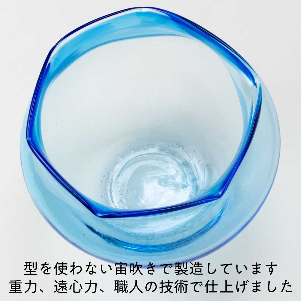 吹きガラスの金魚鉢 大001 青 宙吹き製法で作られたハンドメイドの硝子 滋賀県の吹きガラス工房より 置物 インテリア Glass g fish bowl Shiga craft