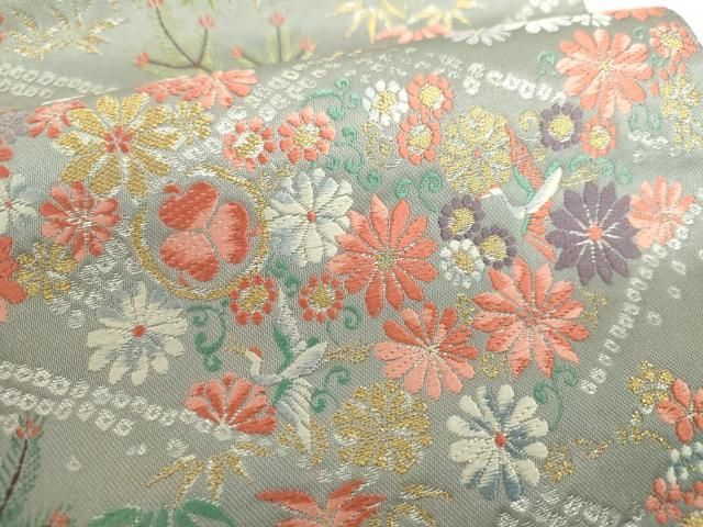 平和屋着物 美しいキモノ お馴染みのメーカー となみ織物 六通柄袋帯 唐織 飛鶴花菱文 金糸 証紙付き 正絹 ps