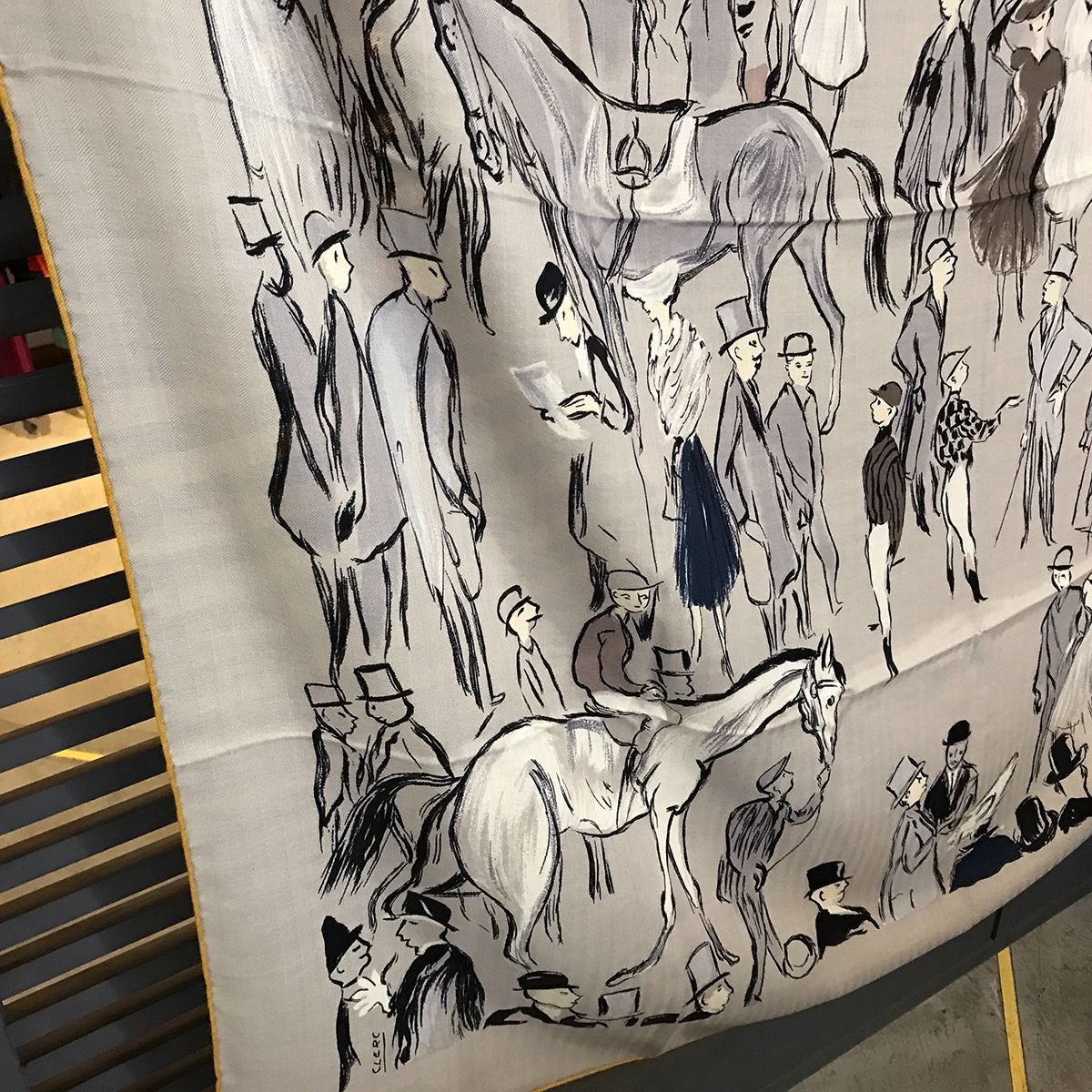 エルメス カレジェアン140 パドック カシシル 大判ショール グリエタン ブルーマリン ナークル 14408