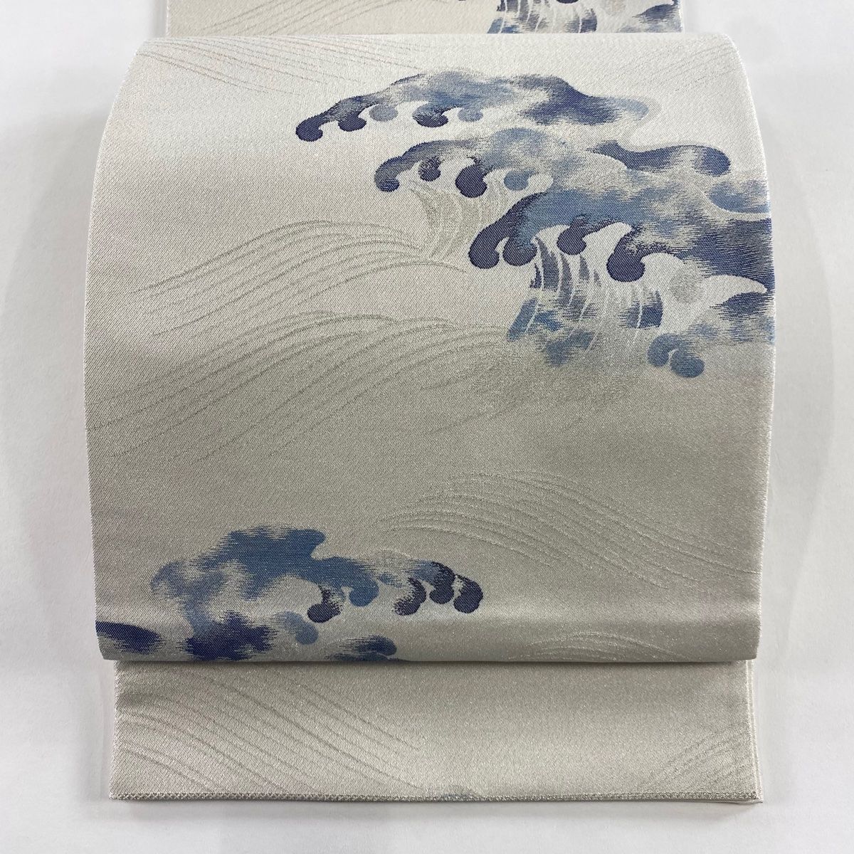 袋帯 名品 佐藤昭人 落款 波頭 波 銀通し 銀糸 灰白 六通 正絹