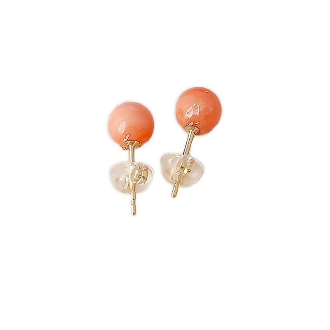 K 18 深海 ピンク 珊瑚 ラウンド 約5-5.5 mm 18金スケルトンキャッチ付き スタッドピアス 直結タイプ 18金