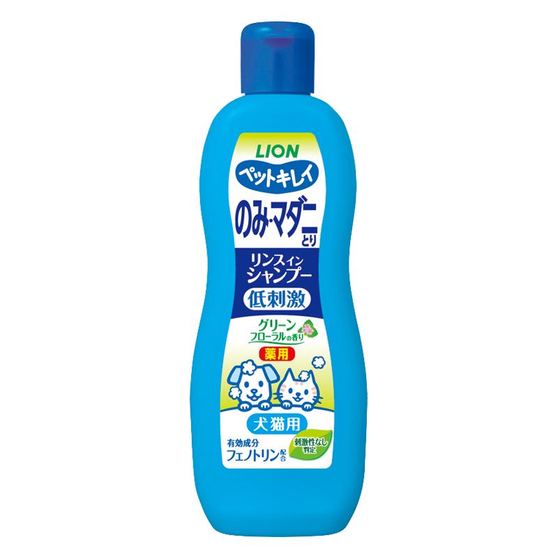 セット ライオンペット ペットキレイ のみマダニとりリンスインシャンプー犬猫用グリーンフローラルの香り330 ml