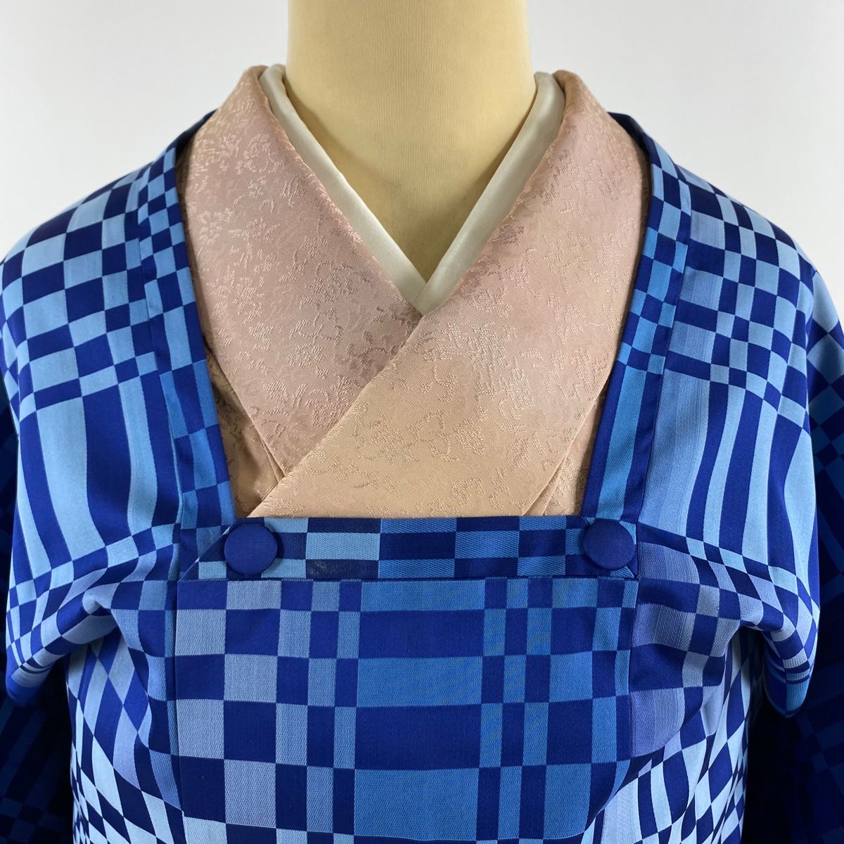 道行 身丈129.5 cm 裄丈62 和装コート 紬地 変わり市松 ぼかし 青 正絹 秀品