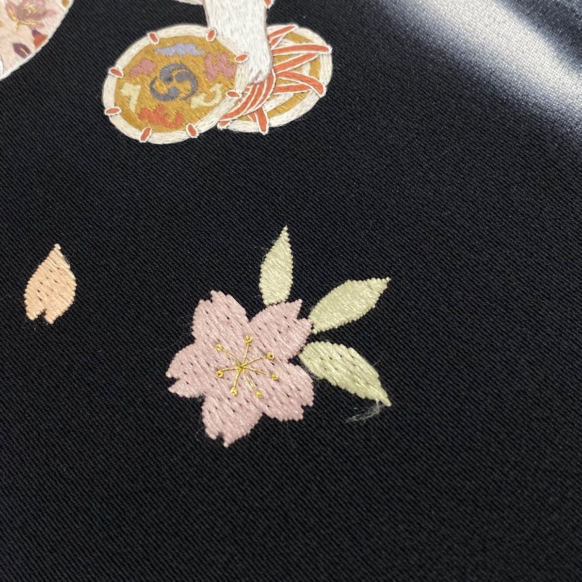 訪問着 身丈155 cm 裄丈66.5 M 袷 童 松竹梅 刺繍 金糸 黒 正絹 秀品