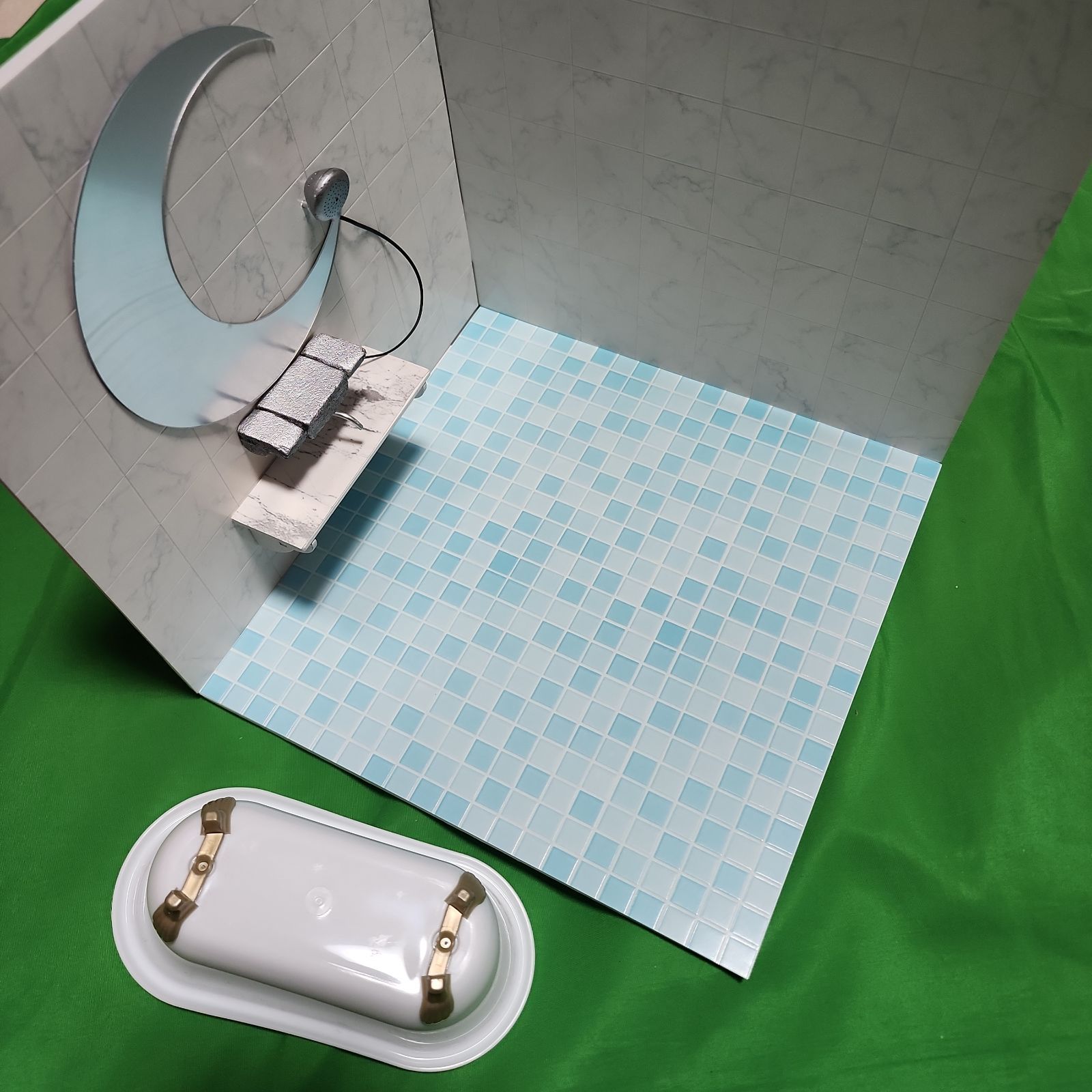 A支店 月のお風呂 お風呂 バスルーム ハンドメイド ドールハウス 背景ボード ミニチュア フィギュア