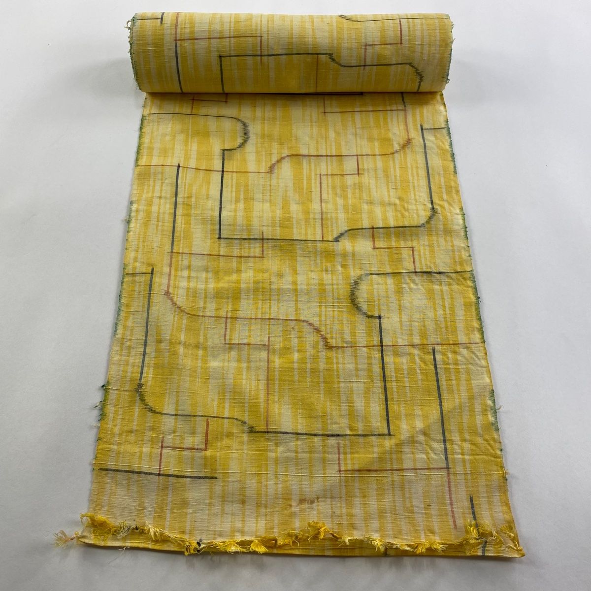 反物 秀品 紬 縦縞 幾何学模様 黄色 正絹
