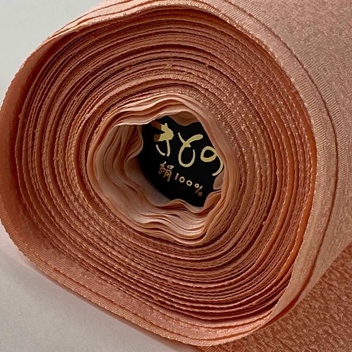 サーモンピンク色の色無地反物でございます。